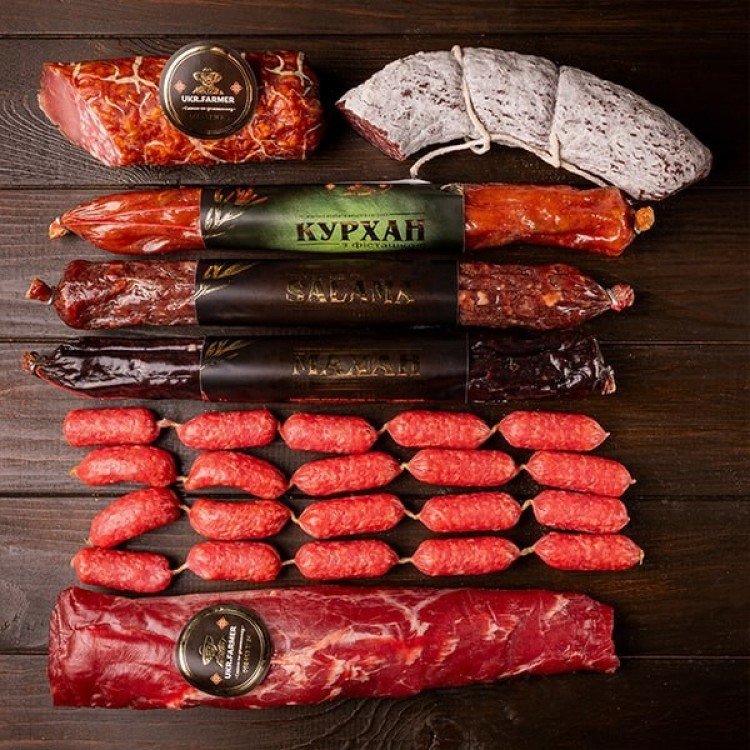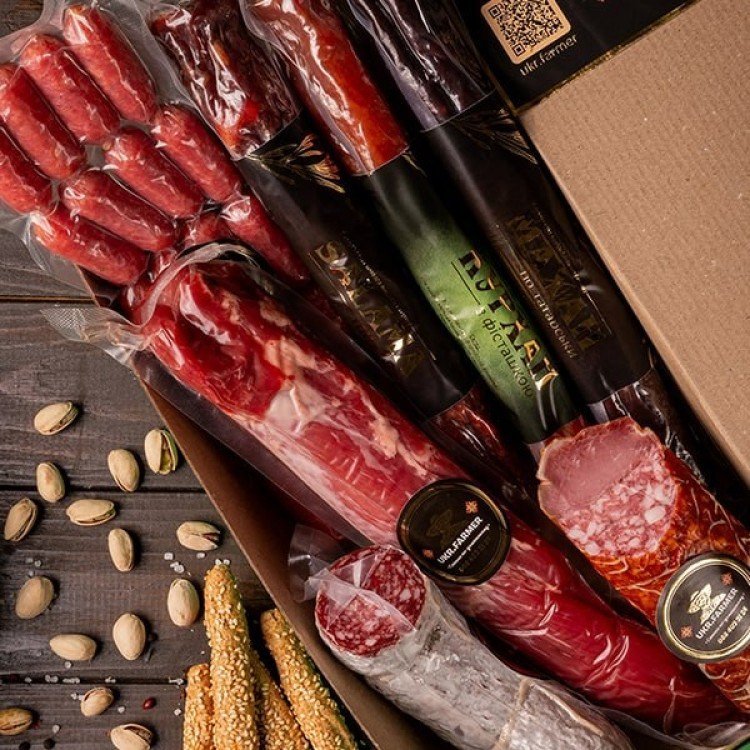 Подарунковий бокс «Преміум» – це набір смачних делікатесів, який включає в себе Саламу з трьох видів м’яса, Махан по-татарськи, Курхан з фісташкою, Пастроман, асорті розкіш, салямі рогалик святковий та міні-салямі. Цей бокс є чудовим подарунком для будь-якого гурмана, який любить смакові витвори з пташиного м’яса. Всі продукти в боксі відмінно поєднуються між собою і створюють незабутні враження для смакових рецепторів.