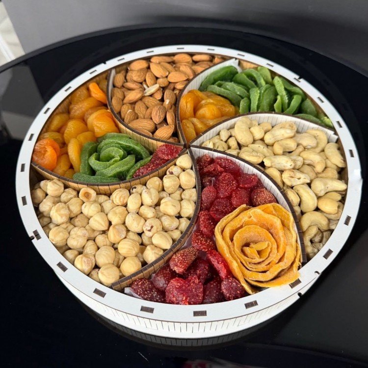 Подарунковий набір із горіхів та сухофруктів: мигдаль, фундук, кеш’ю, курага, манго, полуниця й цукати. Натуральний, корисний і яскравий смак для будь-якої нагоди.